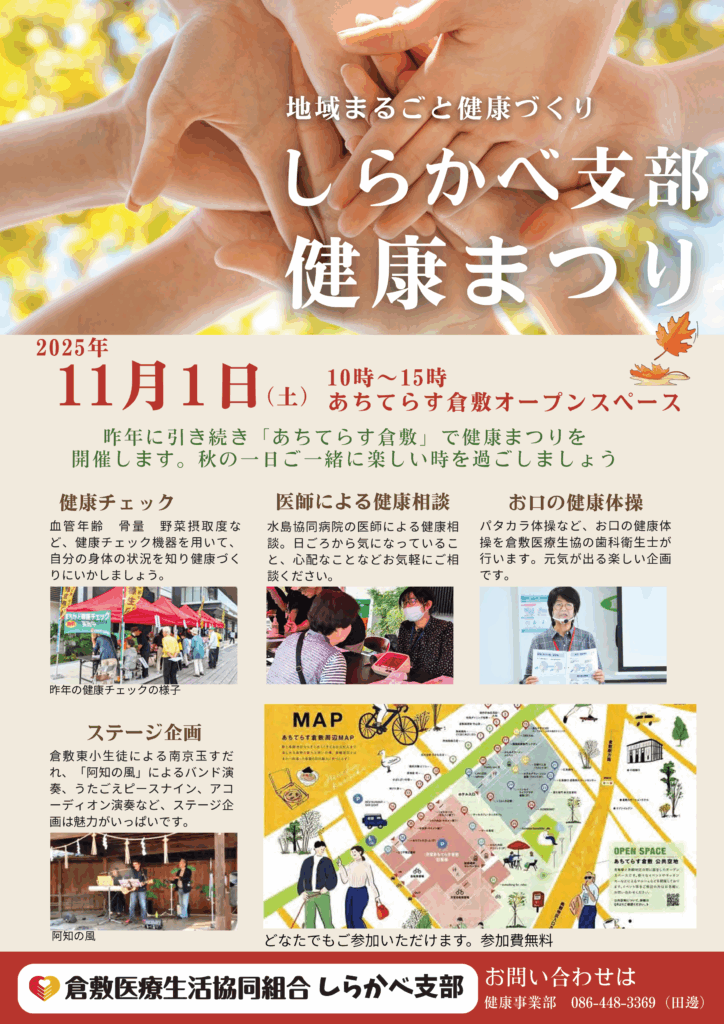 2025年11月1日(土)「倉敷医療生協しらかべ支部健康まつり」が開催されます!